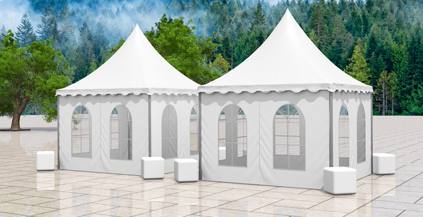 尖頂篷房有多種可供選購的配置,例如:玻璃墻體、玻璃門、地臺板、布幔內飾等。尖頂篷房除了單獨使用外,還可以將它用排水槽連接起來組成更大的面積,形成多樣的造形,在戶外活動應用中更加精彩。