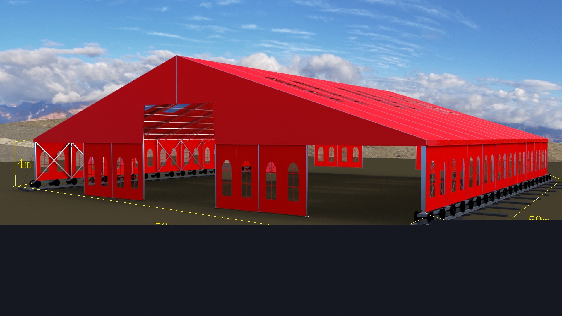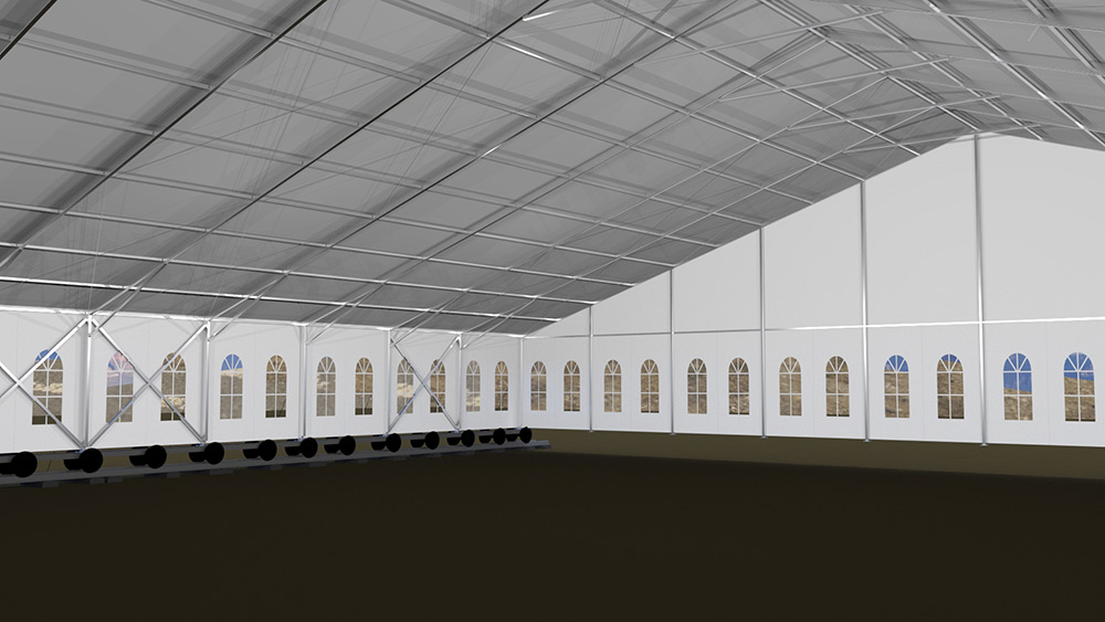 這種篷房建筑,高強(qiáng)度鋁合金結(jié)構(gòu),抗風(fēng)能力,載雪能力很強(qiáng)。根據(jù)國家要求,必須是可移動(dòng)結(jié)構(gòu),工程師們根據(jù)參數(shù)要求,采用礦輪承載方式,一座篷房建筑鋪設(shè)了兩條鐵軌的方式,實(shí)現(xiàn)了這個(gè)要求,國家環(huán)保部門,國土資源部門同時(shí)通過驗(yàn)收。